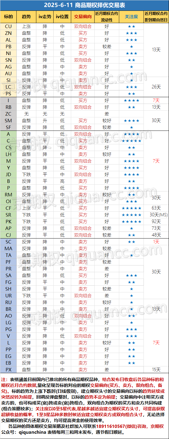 商品期权择优交易表(6月11日)一些品种8月期权合约的流动性尚未起来