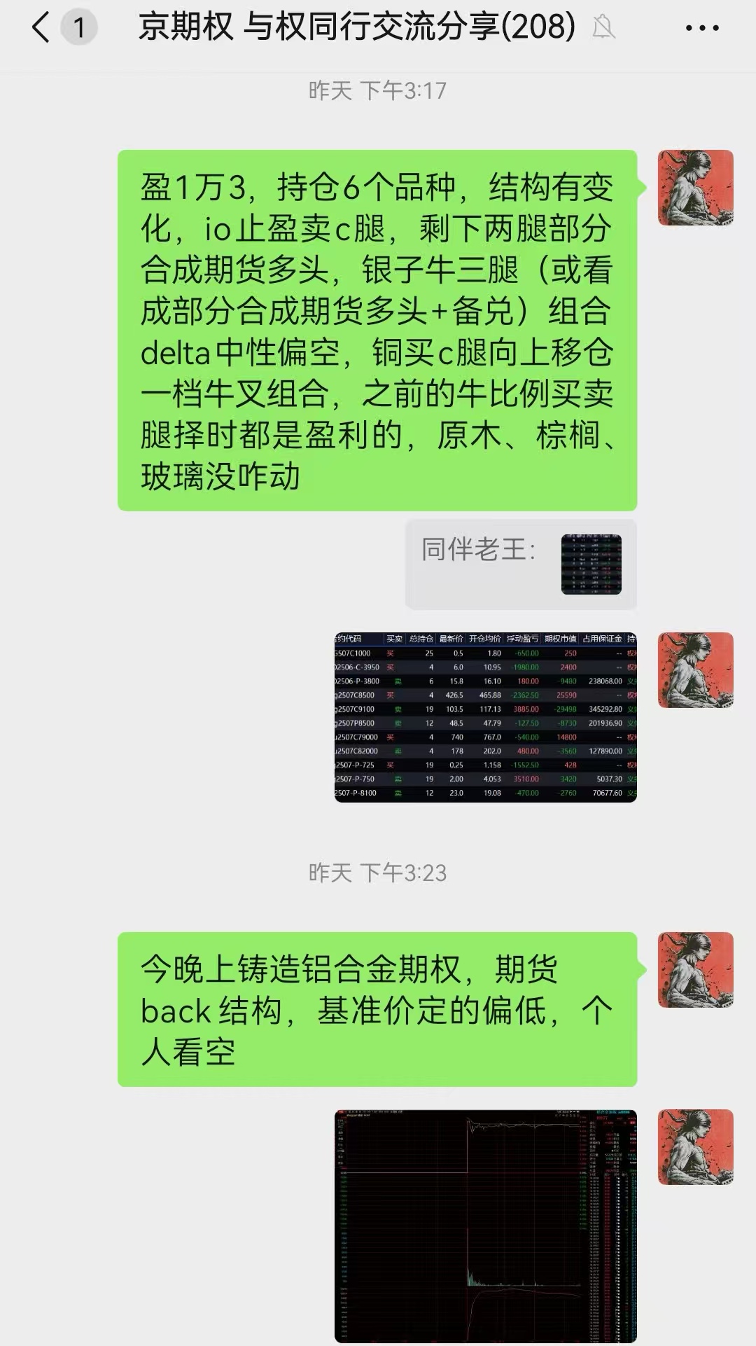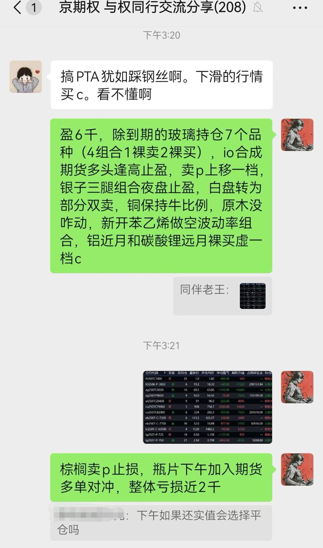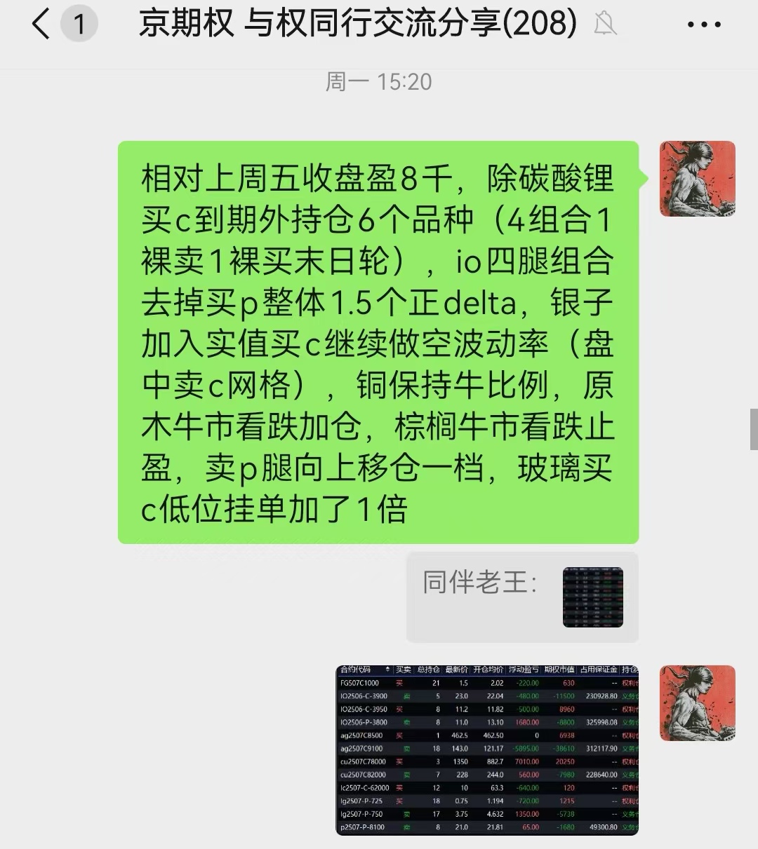 我们目前持仓7个品种(4组合1裸卖2裸买,表下附持仓截图),末日轮品种有布局,每天盘后我们都会在微信群晒单和分享一些经验(表下多图),想了解更多期权交易机会和策略,可加入我们的微信群潜水和交流,具体组合构建、合约选择、风控方法等可致电或微信交流。以下表中内容仅供参考,不构成交易建议。